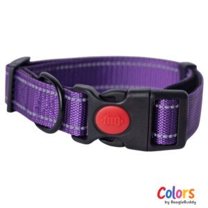 Disponible en tres tallas (S, M y L) y dos anchos de reata (20 mm y 25 mm), este collar viene en colores vivos que combinan perfectamente con toda nuestra colección:«Colors by BeagleBuddy«.